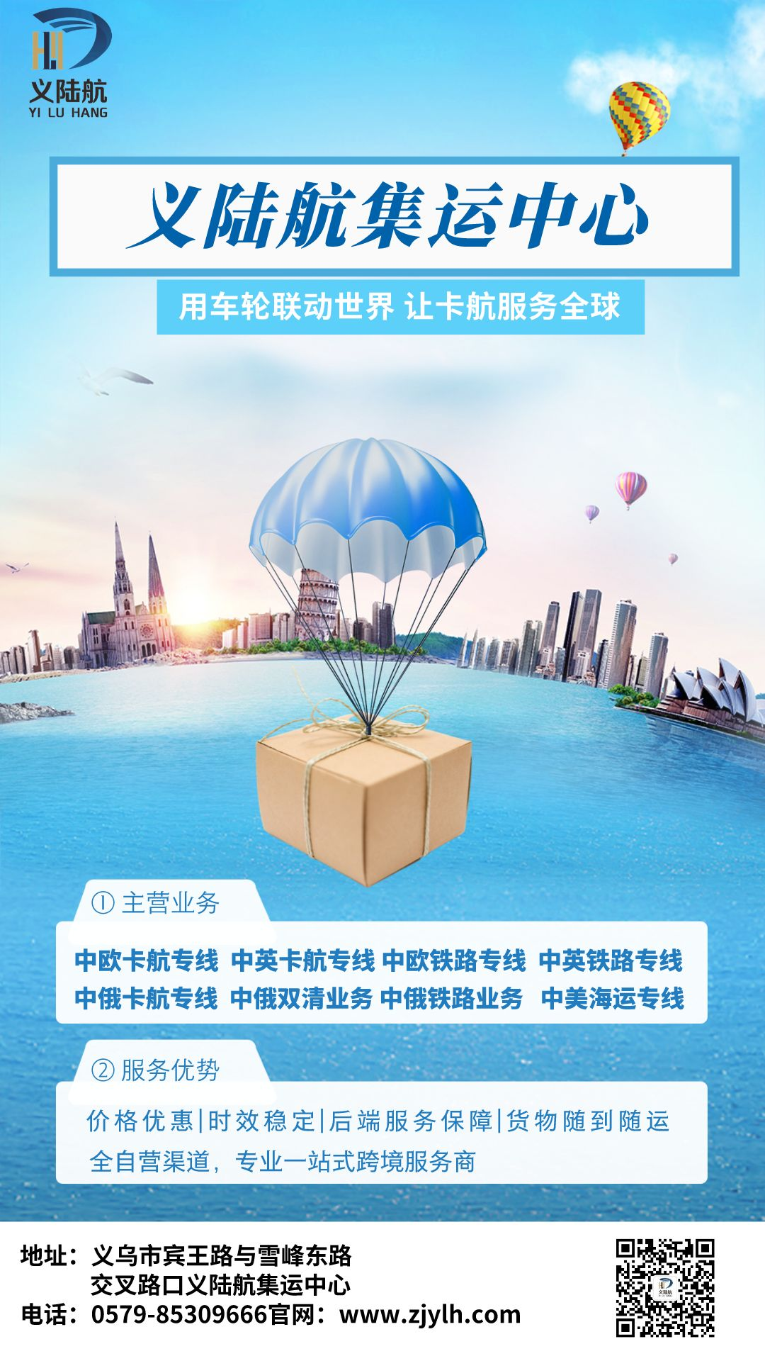 浙江义陆航国际供应链有限责任公司,是一家致力于打造“一带一路”义乌卡航集散中心,新疆自有海关监管库为枢纽,提供全产业链自主化运输服务。 以卡航、铁路等为主要货运通道,以欧洲、英国、俄罗斯为主要目的地,集聚全国跨境电商散货在义乌拼箱出口。实现欧洲、英国、俄罗斯等多个国家的常态化陆运、空运、海运等运输方式,提供欧洲FBA/传统大贸货/小包专线(英、德、法、意等全欧)、中亚、中俄传统贸易/市场采购/FBA/小包专线,并加大仓储系统的投入,结合客户、国内仓、关务、海外仓、派送等各方服务打造专属的一体化国际物流供应链系统。